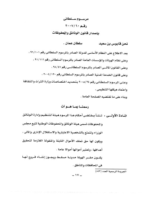 قانون الوثائق والمحفوظات بسلطنة عمان